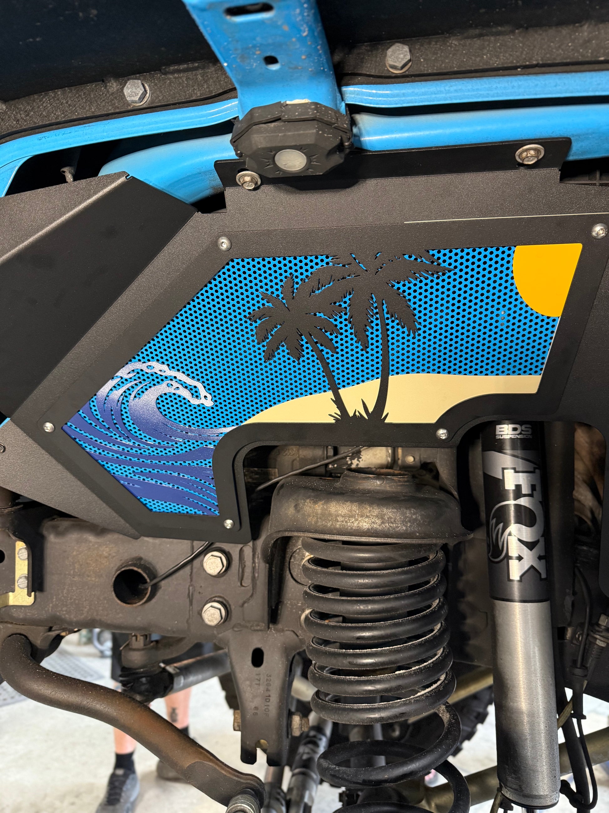 The Rock Ready Offroad JT Front Custom Aluminum Inner Fenders are built for Jeep owners who want strength, style, and full personalization. Constructed from 3/32" aluminum and assembled with stainless steel hardware, these fenders are both lightweight and durable—offering rust-proof protection on every trail.